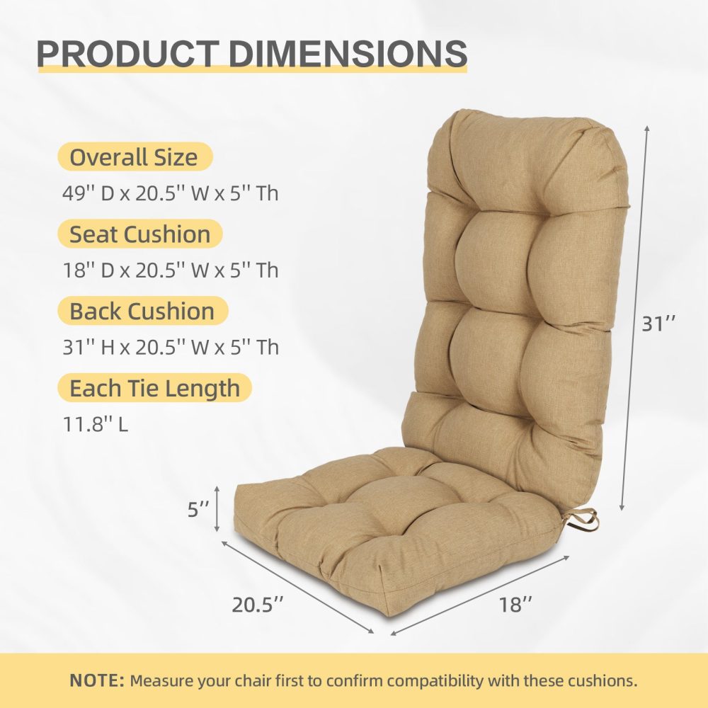 - Perfect Fit for Your Outdoor Adirondack Chair Cushions: Transform your patio seating with these best Adirondack chair cushions designed for both comfort and durability. Each set includes two perfectly sized cushions: seat cushion (18″ D x 20.5″ W x 5″ thick) and back cushion (31″ H x 20.5″ W x 5″ thick). These dimensions work beautifully with most standard Adirondack chairs, patio rockers, and high-back outdoor furniture.