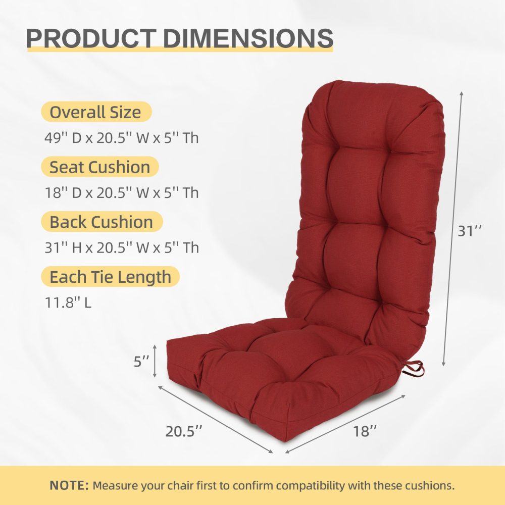 - Choose Your Style: Available in several colors including popular adirondack chair cushions red, plus other shades to complement your outdoor décor. They’re sized to fit Adirondack chairs, patio rockers, and similar high-back seating perfectly. Just measure your furniture first to ensure the best fit for your space.