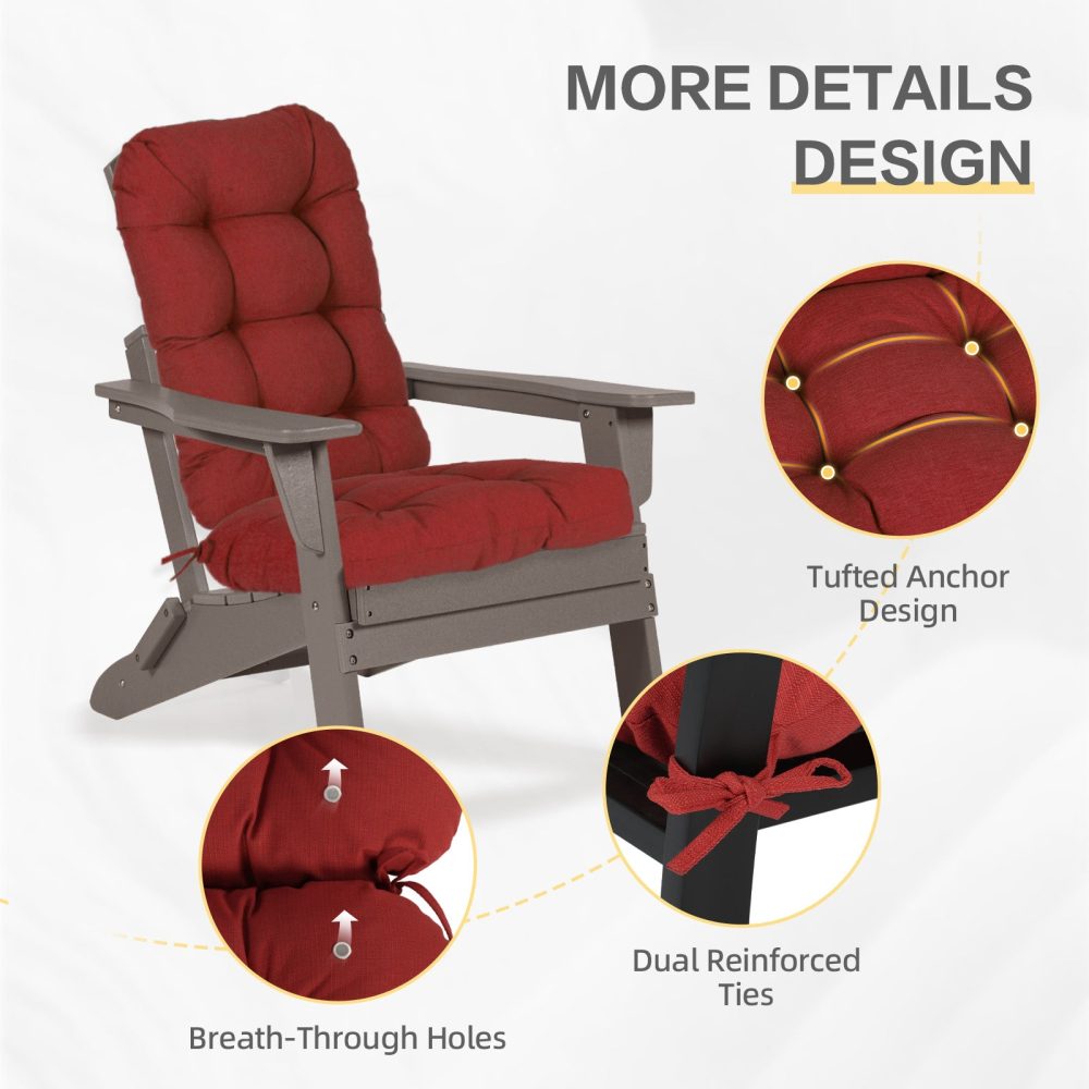 - Tufted Design That Stays Put: These tufted adirondack chair cushions feature classic button details that do more than look good—they keep the filling evenly distributed for consistent comfort. Two sturdy ties on each cushion secure everything in place, so you won’t be constantly readjusting your seating.
